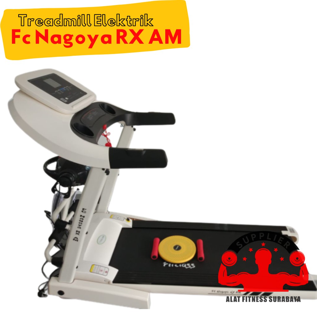 Satu lagi treadmill elektrik yang juga bisa jadi alat latihan di rumah, FC Nagoya RX AM Gym. Alat yang mempunyai fungsi utama sebagai alat latihan lari atau jogging ini dapat dilipat sehingga tidak memakan tempat ruang penyimpanan. Treadmill elektrik ini juga dilengkapi dengan safety lock sistem yang berfungsi sebagai pengaman. Jika Anda terjatuh saat latihan, maka mesin treadmill akan mati secara otomatis. Alat ini dibekali dengan dinamo berkecepatan hingga 16 km per jam dan kekuatan 1,5 HP. Dengan area lari 43 x 125 cm, treadmill ini dapat menahan berat pengguna hingga 110 kg dan memiliki kemiringan 15%. Monitornya juga dilengkapi dengan beberapa fitur seperti display kecepatan, jarak, kalori, waktu dan detak jantung. Agar tidak jenuh selama latihan alat ini juga dibekali dengan USB dan kabel AUX yang memiliki dua speaker. Anda bisa memilihnya sebagai sarana latihan dan pastikan Anda memilih treadmill yang sesuai