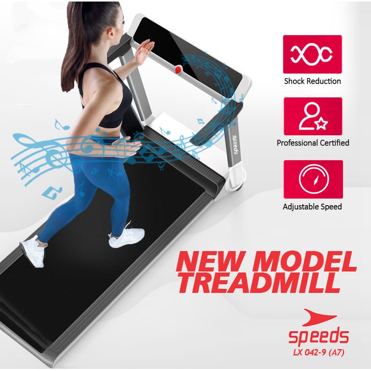 Treadmill LX 042-9 (A7) adalah treadmill impor yang multifungsi dan dapat digunakan untuk berolahraga di rumah. Alat fitness ini dilengkapi dengan panel kontrol dan tampilan LCD yang dapat menunjukkan kecepatan, waktu, penghitung kalori, dan detak jantung. Dibekali dengan motor berkekuatan hingga 0,75 HP, treadmill ini dapat mencapai kecepatan hingga 8 km per jam. Dapat menahan berat hingga 90 kg, alat ini juga dilengkapi dengan bluetooth dan memiliki area lari 1000 x 400 x 1,6 mm. Dengan ukurannya yang cukup ringkas, alat ini cocok digunakan untuk pemula.
