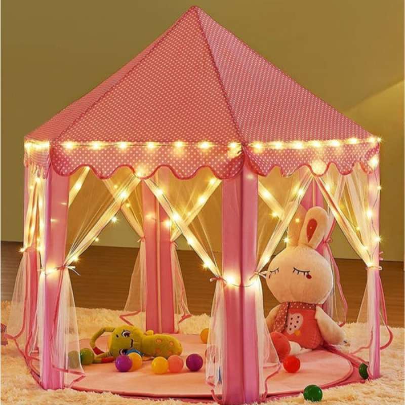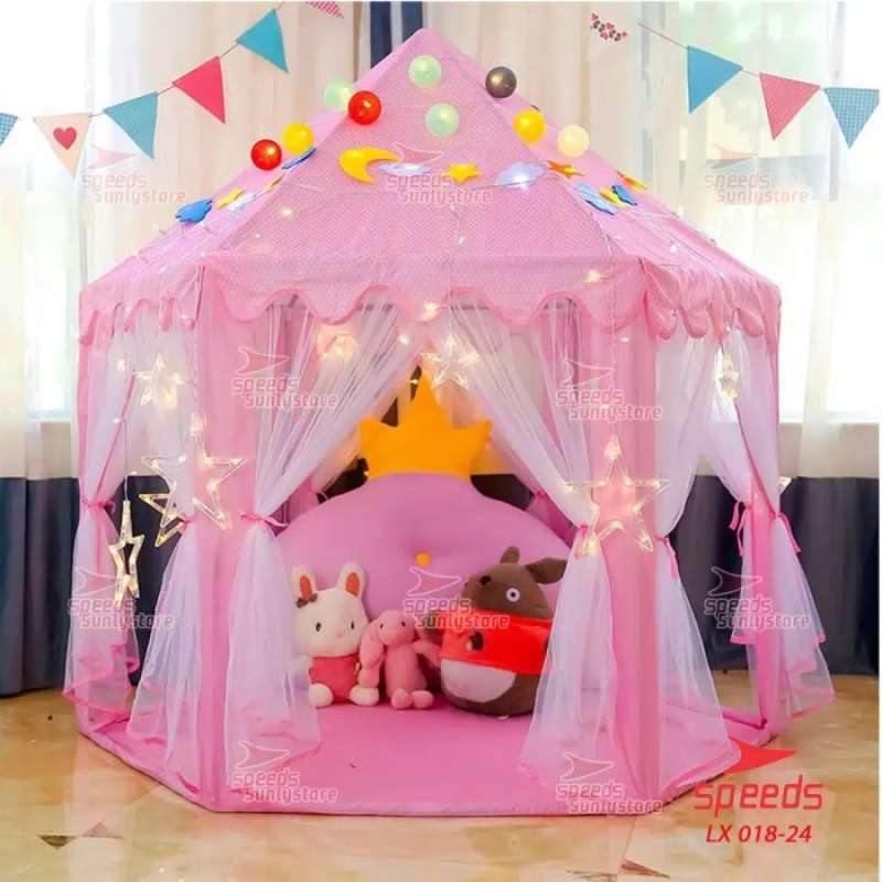 TENPR - Tenda Anak Princess Mainan Tenda Castle Anak Kastil Indoor adalah pilihan yang sempurna untuk anak-anak yang ingin merasakan pengalaman bermain sebagai putri raja. Dengan warna merah muda yang menawan dan tirai-tirai yang cantik, tenda ini menciptakan suasana magis yang tak terlupakan.