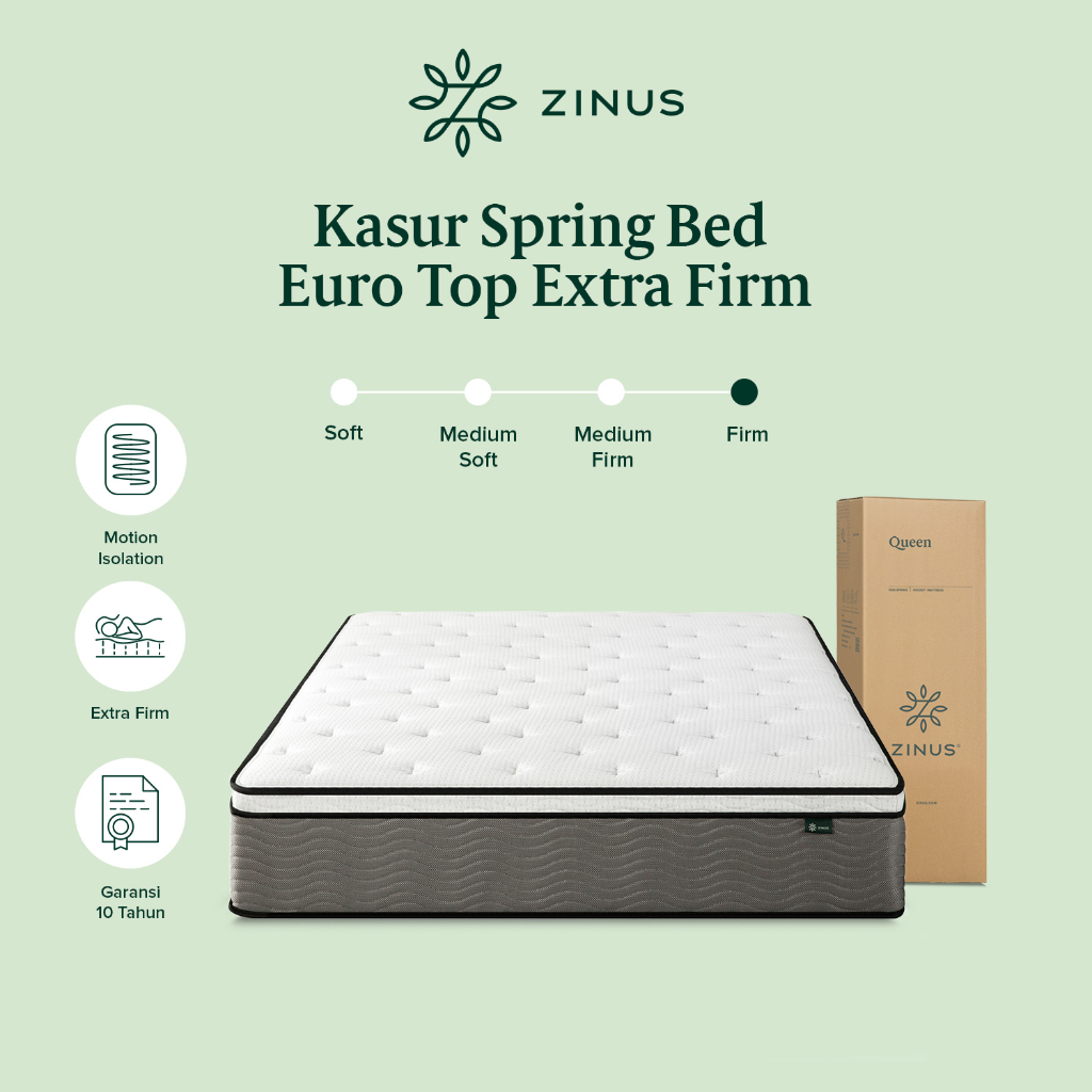 Kasur Zinus Spring Bed Euro Top juga memiliki keunggulan sebagai produk antibakteri dan antibau, menjadikannya lebih aman dan nyaman digunakan untuk beristirahat. Meskipun Anda perlu menunggu selama 72 jam agar kasur mengembang sepenuhnya sebelum digunakan, namun kepuasan tidur yang Anda dapatkan sebanding dengan waktu yang Anda investasikan. Jadi, jangan lewatkan kesempatan untuk memiliki kasur ini dan rasakan tidur yang nyenyak seperti yang Anda inginkan!