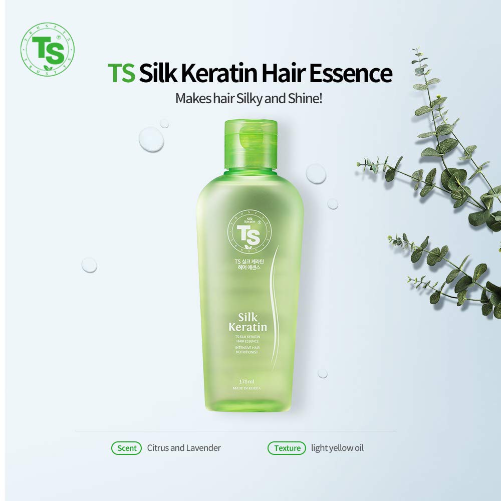 TS Silk Keratin Hair Essence adalah produk perawatan rambut yang mengandung bahan-bahan berbahan dasar sutra dan minyak esensial, membantu menjaga kelembapan, memberikan nutrisi, dan merawat rambut rusak. Essence rambut ini cocok untuk rambut yang sering dikeriting, diwarnai, menggunakan pelurus rambut, kusut, dan bercabang. Mengandung protein dan minyak esensial seperti Camellia Japonica Seed Oil, Jojoba Seed Oil, Lavender Oil, Citrus Aurantium Dulcis Peel Oil, dan Citrus Aurantium Bergamia (Bergamot) Fruit Oil, produk ini memberikan hidrasi, nutrisi, dan kondisioning untuk rambut, meninggalkannya terlihat lebih sehat, halus, dan berkilau. Bebas dari pewarna buatan dan parfum sintetis, TS Silk Keratin Hair Essence menjadi pilihan yang baik untuk merawat rambut secara alami.