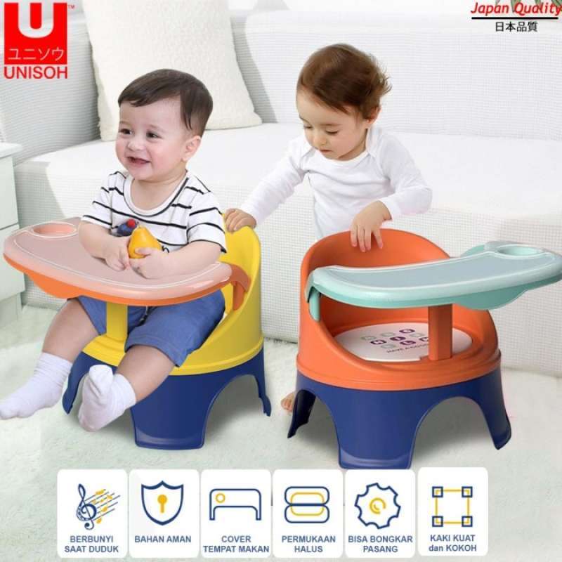 UNISOH Baby Chair Booster Seat adalah kursi makan bayi kokoh yang terbuat dari bahan tebal, mencegah bayi terguling saat makan atau bermain. Diklaim ramah lingkungan dan bebas BPA, kursi ini aman untuk buah hati Anda. Fitur uniknya adalah kemampuan untuk mengeluarkan suara, menghibur bayi saat rewel atau menolak makan. Dirancang ringan dan mudah dipindahkan, terbuat dari bahan plastik dan PVC. Desain colorful dan ekonomis, membuatnya ideal bagi mereka dengan budget terbatas. Produk ini juga dapat digunakan sebagai meja bermain anak, menambah fungsionalitasnya.