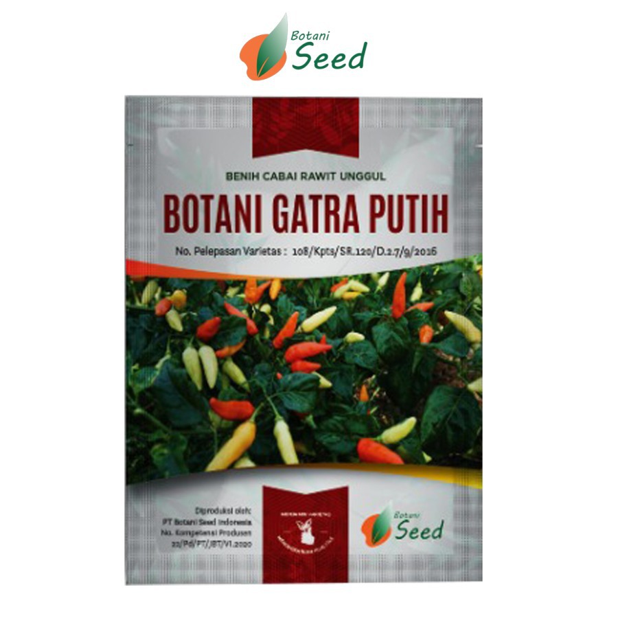 Botani Gatra Putih merupakan varietas unggul cabai rawit dengan rasa tidak terlalu pedas. Benih ini diproduksi oleh Botani Seed dengan dukungan dari Institut Pertanian Bogor, yang terkenal sebagai pemasok benih berkualitas. Cabe rawit Gatra Putih memiliki umur panen antara 95-105 hari dengan potensi hasil hingga 17 ton per hektar. Benih ini direkomendasikan sebagai pilihan yang menguntungkan bagi para petani. Tanamlah cabai sendiri dengan Benih Botani Gatra Putih untuk mendapatkan hasil panen yang lebih banyak, hemat, dan berkualitas tinggi. Selain itu, cabai rawit juga memiliki manfaat kesehatan, seperti membunuh sel kanker, melancarkan pencernaan, dan meningkatkan kinerja otak.