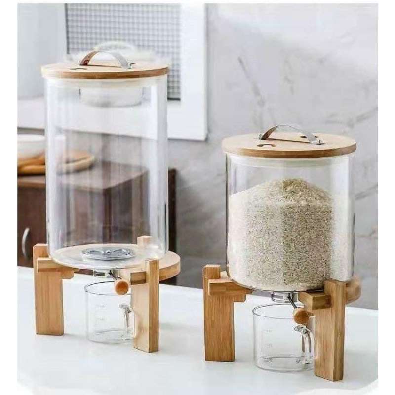 Tempat Penyimpanan Wadah Beras Toples Kaca Rice Glass Dispenser Matic