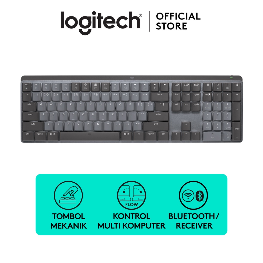 Logitech MX Mechanical adalah keyboard full-size yang menawarkan nuansa, presisi, dan kinerja luar biasa. Dengan tipe tombol switch Tactile Quiet, keyboard ini memberikan feedback yang memuaskan dan pengetikan yang sederhana. Keycap dua warna dan backlight cerdas membantu memandu penglihatan dan menjaga fokus dalam alur kerja. Didesain ergonomis dengan fitur smart backlighting dan easy-switch, keyboard ini dapat terhubung hingga 3 perangkat dan membuatmu tetap fokus bekerja dalam waktu lama. Persyaratan sistem yang kompatibel dengan berbagai perangkat dan port USB-A kosong memastikan kenyamanan penggunaan. Dengan baterai yang dapat diisi ulang, keyboard ini memiliki daya tahan yang lama, dan pengaturan backlight yang otomatis menyesuaikan dengan kondisi pencahayaan.