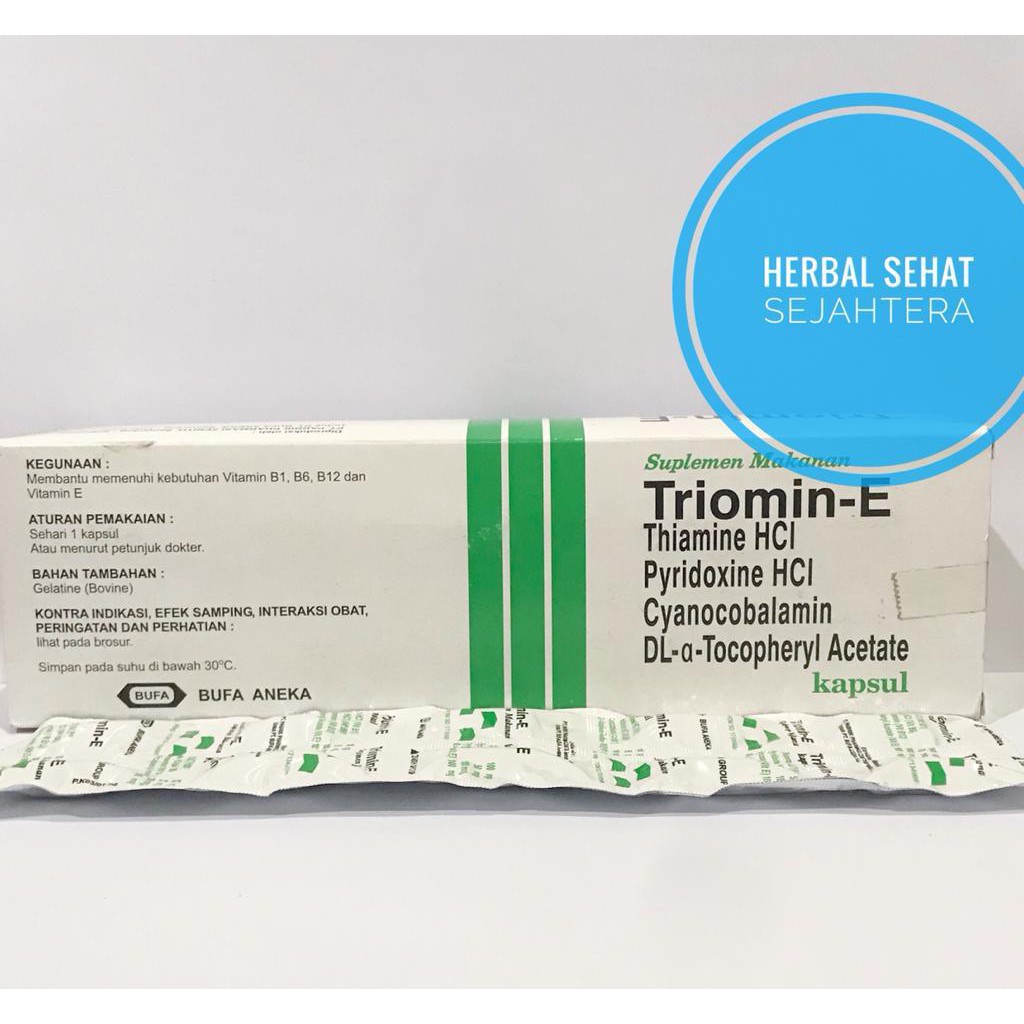 Triomine E Stripe digunakan untuk pencegahan dan pengobatan defisiensi vitamin B1, B6, B12, E, dan anemia. Setiap kapsul mengandung vitamin B1 sebanyak 100 mg, vitamin B6 sebanyak 50 mg, vitamin B12 sebanyak 100 mcg, dan vitamin E sebanyak 100 mg. Dosis yang direkomendasikan adalah 1 kapsul per hari. Kapsul ini dapat dikonsumsi sebelum atau sesudah makan, dan dapat diberikan bersama makanan untuk penyerapan yang lebih baik atau jika ada ketidaknyamanan pada saluran pencernaan. Produk ini hadir dalam kemasan strip dengan 10 kapsul. Harap diingat bahwa produk ini memiliki kontraindikasi bagi pasien yang hipersensitif terhadapnya, serta perhatian khusus diberikan pada pasien dengan penyakit Parkinson yang sedang menjalani terapi levodopa.