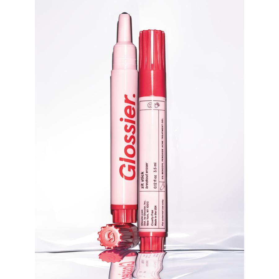 Glossier Zit Stick memiliki bentuk pena portabel yang dirancang agar praktis untuk bisa dibawa kemana saja. Mengandung benzoil peroksida 5% yang dapat membunuh kuman penyebab jerawat sambil mengecilkan ukuran dan bengkak dan kemerahan.