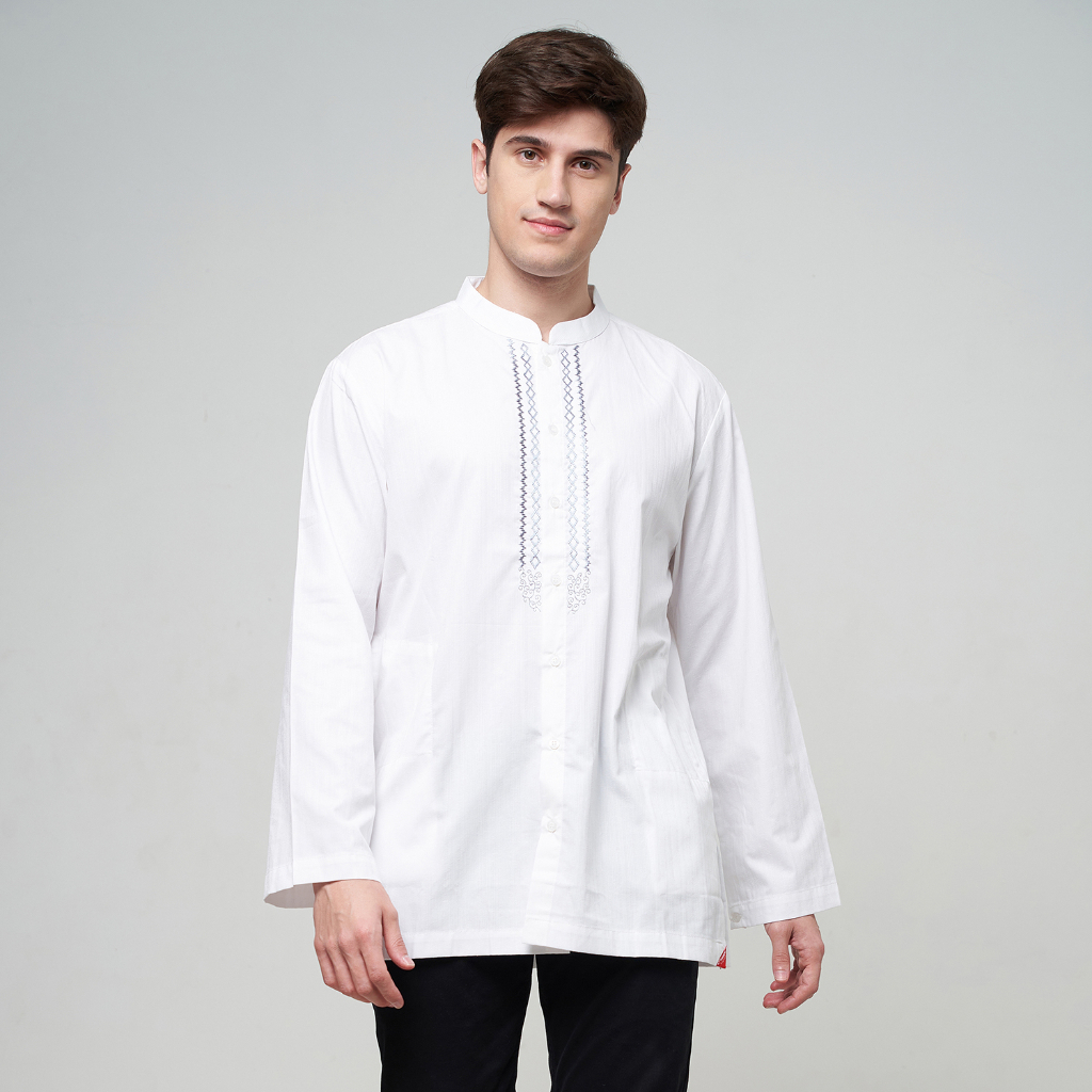 Tampilkan penampilan maskulin dengan elegansi sederhana pada acara formal dengan koleksi Menswear Shafira. Dibuat dengan material Semi Woll yang memberikan sentuhan kelas, kemeja lengan panjang ini memiliki desain Chiang ie collar dan hidden button opening, serta ramah wudhu.