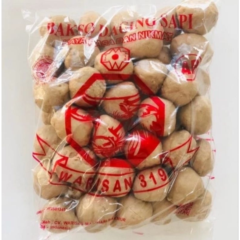Bakso Warisan adalah bakso daging sapi berkualitas dengan isi 50 butir per pack sekitar 700 gram. Produk ini merupakan bakso nikmat dan terkenal yang dijamin kualitasnya sehingga cocok untuk restoran. Dikemas dengan plastik vakum, Bakso Warisan dapat mempertahankan kualitas, bentuk, rasa, penampilan, dan tekstur bakso yang dihasilkan, serta meningkatkan umur simpan dan keawetan produk. Produk ini telah terjamin HALAL 100%, dan dapat disimpan dalam lemari es untuk bertahan lebih lama hingga enam bulan.