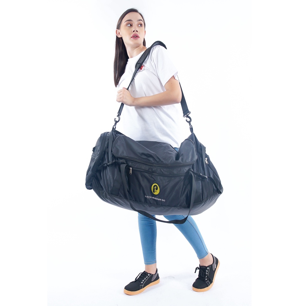Salah satunya ada Tas duffel 60L Lipat Travel Palava. Tersedia dengan ukuran 74x35x40 cm yang bisa memasukkan banyak barang. Bahannya menggunakan bahan nylon, selain itu juga hemat ruang. Karena bisa dilipat bentuk seperti sling bag.