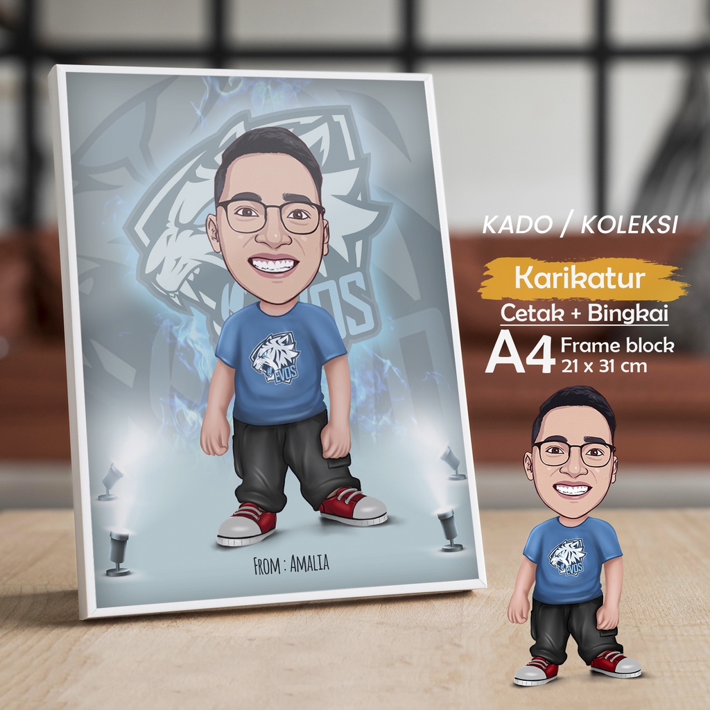 Saat ini sudah banyak lukisan karikatur yang bisa disesuaikan dengan keinginan harganya pun juga beragam. Tergantung dari tingkat kesulitan, frame yang dipilih, dan ukuran. Lukisan karikatur bisa kamu pesan jauh-jauh hari.