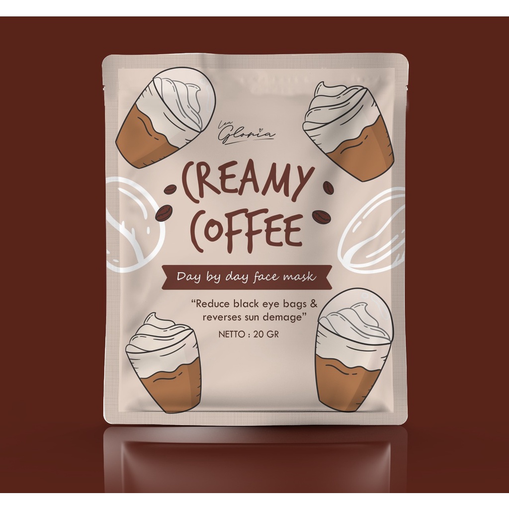Creamy Coffee Masker Lea Gloria adalah masker bubuk yang berfungsi mengurangi mata panda, melindungi kulit dari kerusakan akibat sinar UV dengan antioksidan, dan mengangkat sel kulit mati. Masker ini mengandung biji kopi yang kaya akan kafein dan asam klorogenat (CGA) yang membantu mengurangi peradangan pada kulit serta memiliki sifat antimikroba. Kafein pada kopi juga meningkatkan mikrosirkulasi darah dan memiliki efek anti-inflamasi pada kulit wajah. Penggunaan masker kopi ini membantu merelaksasi kulit wajah dan mengurangi munculnya bintik-bintik cokelat akibat paparan matahari, kemerahan, dan garis-garis halus pada wajah, memberikan manfaat relaksasi dan mengurangi stres pada kulit wajah serta membantu mengurangi kerut-kerut halus.