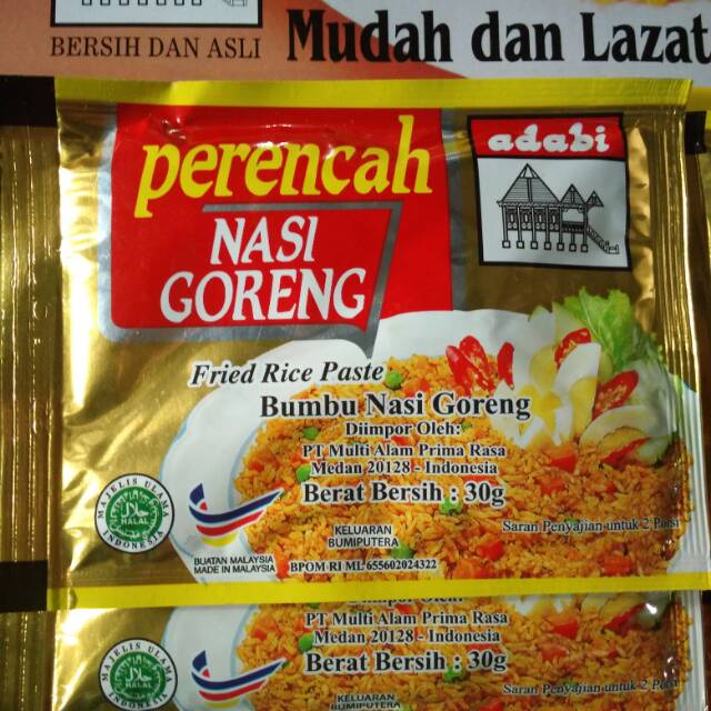 Adabi Perencah Bumbu Nasi Goreng ini juga menjadi pilihan tepat untukmu. Bumbu khas Malaysia ini bikin kamu seolah sedang berada di Malaysia dan mencicipi nasi goreng khasnya. Bumbu ini rasanya nendang dan sangat gurih. Produk ini dikemas dalam kemasan sachet yang cukup untuk 2 porsi. Bumbu ini berbahan alami dan tak memakai bahan pengawet. Produk mudah dimasak dan tak butuh waktu lama untuk mengolahnya.