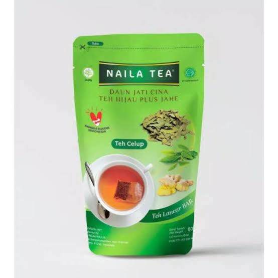 Kandungan senyawa aktif dalam daun jati Cina seperti tanin dapat menyerap lemak atau karbohidrat dari makanan yang masuk sehingga bisa membantu menurunkan berat badan. Kandungan jahe pada produk Naila Tea ini sangat bagus untuk menghangatkan badan.