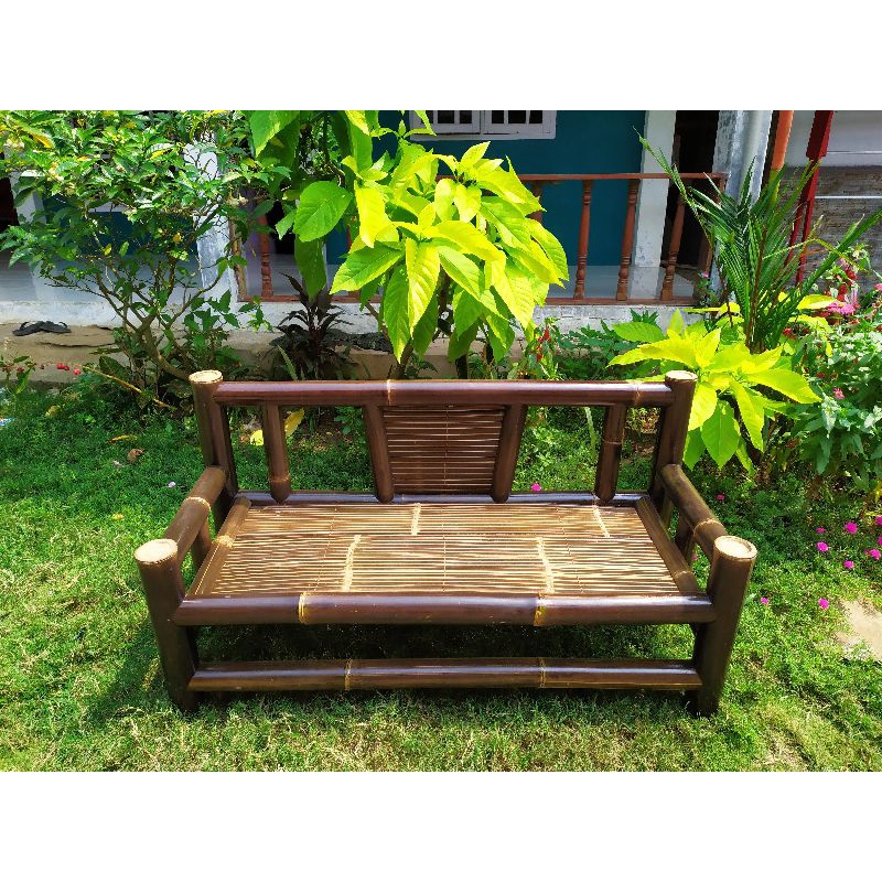 Kursi Bambu sesuai bagi Anda yang ingin membangun suasana klasik dan sederhana. Warna coklat gelap yang dihasilkan dari furnitur ini sangat serasi jika disandingkan dengan pepohonan rindang dan tanaman hijau lainnya. Dengan perpaduan ini, suasana tenang pedesaan bisa Anda dapatkan dan membuat suasana hati lebih rileks.