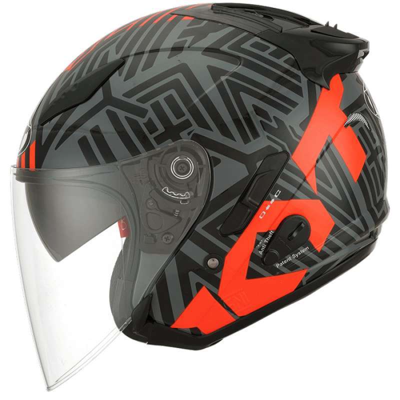 KYT Galaxy Slide Flat R Helm Half Face Neon - Gorila Grey/Red Fluo adalah helm half face yang trendy dengan paint motif grafis yang menarik serta dilengkapi dengan double visor. Desain helm open face ini memiliki fitur-fitur unggulan, seperti perlindungan anti gores, pengait keselamatan mikrometrik, dan sertifikasi standar DOT dan SNI 1811-2007. Selain itu, bagian dalam helm ini mudah dilepas dan dapat dicuci dengan mudah, memberikan keamanan yang optimal saat berkendara sehari-hari.