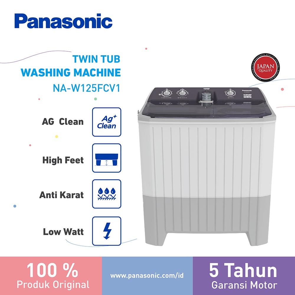 Panasonic NA-W125FCV1V Mesin Cuci 2 Tabung [Tutup Transparant] Low Watt