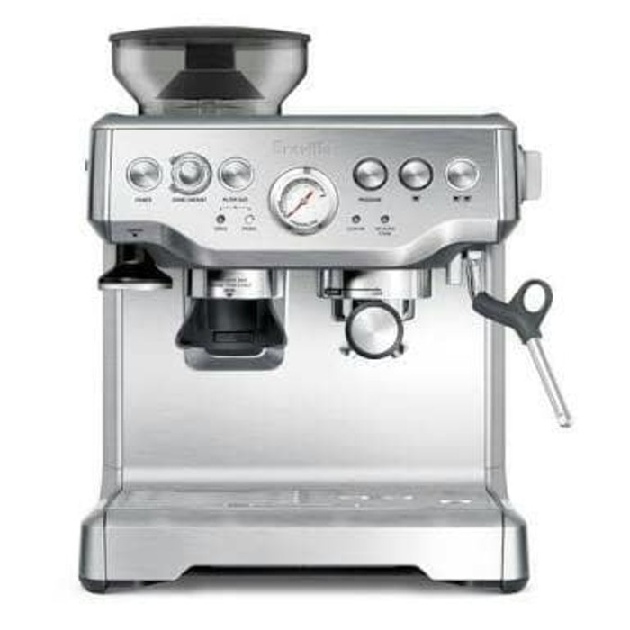 Breville BES870 merupakan mesin kopi profesional buatan Australia. Mesin ini dilengkapi dengan board grinder 250gm yang bisa membuat hingga 25 cangkir kopi untuk mempercepat proses pembuatan kopi. Kontrol temperatur dengan fitur PID dapat mempertahankan stabilitas suhu selama proses ekstraksi.