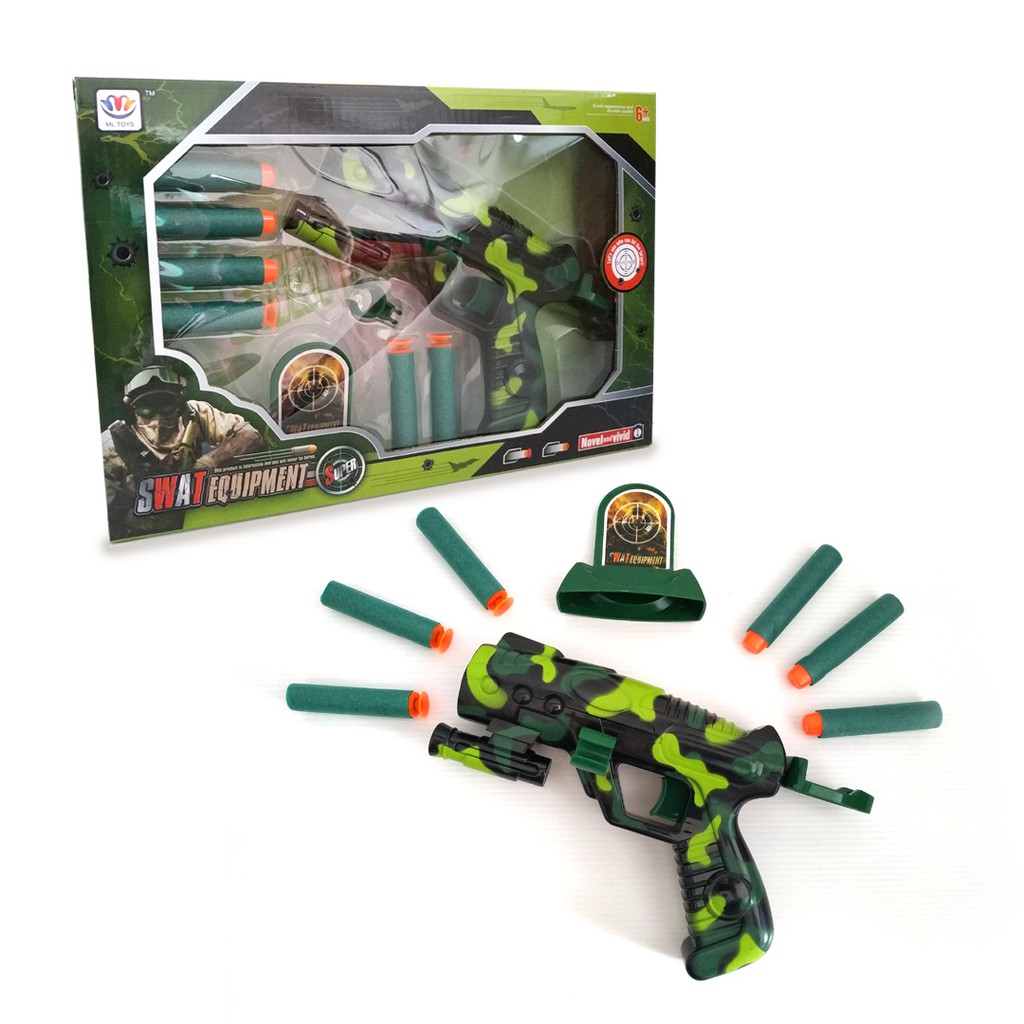 Nerf ML Toys 920B Gun Set adalah koleksi mainan tembak-tembakan yang dirancang oleh ML Toys. Mainan ini terbuat dari plastik ABS berkualitas dan telah bersertifikat SNI. Nerf gun atau Nerf blaster merupakan mainan yang menggunakan tekanan untuk melontarkan proyektil busa, dart, atau bola. Set ini lengkap dengan berbagai spesifikasi dan kualitas yang telah melewati Quality Control sebelum dipacking. Meskipun ada tambahan perlindungan seperti Bubble Wrap dan Kardus untuk meminimalisir kerusakan selama pengiriman, kerusakan akibat proses pengiriman bukan tanggung jawab penjual.