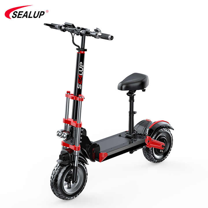 Sealup Q7 Skuter Listrik adalah skuter bertenaga dua penggerak motor depan dan belakang 500Watt yang dilengkapi dengan peredam kejut belakang dan penyesuaian tiga kecepatan (20 km/jam, 35 km/jam, dan 55 km/jam). Dengan layar LCD besar yang menampilkan informasi seperti posisi gigi, kecepatan, jarak tempuh, dan sisa daya baterai secara real-time, skuter ini memberikan pengalaman berkendara yang lebih cerdas, aman, dan terkontrol. Dilengkapi dengan baterai 48V500W 28.6AH, Sealup Q7 dapat melaju hingga 100-120 km dengan ban tubeless off-road 11 inci yang memberikan pegangan yang baik. Rem cakram roda depan dan belakang, ditambah dengan rem elektrik E-ABS, memastikan pengereman efisien, respons cepat, dan jarak pengereman yang lebih pendek, membuat berkendara menjadi lebih aman dan nyaman.