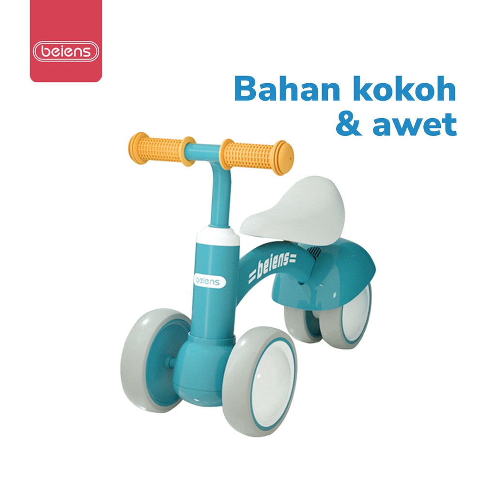 Jika Anda ingin mengajarkan keseimbangan sepeda pada si kecil sedari dini, coba pertimbangkan menggunakan balance bike yang satu ini. Balance bike ini dilengkapi dengan empat roda yang tampak seperti tiga roda, namun dengan keunikan pada bagian depannya yang dilengkapi dengan dua roda.