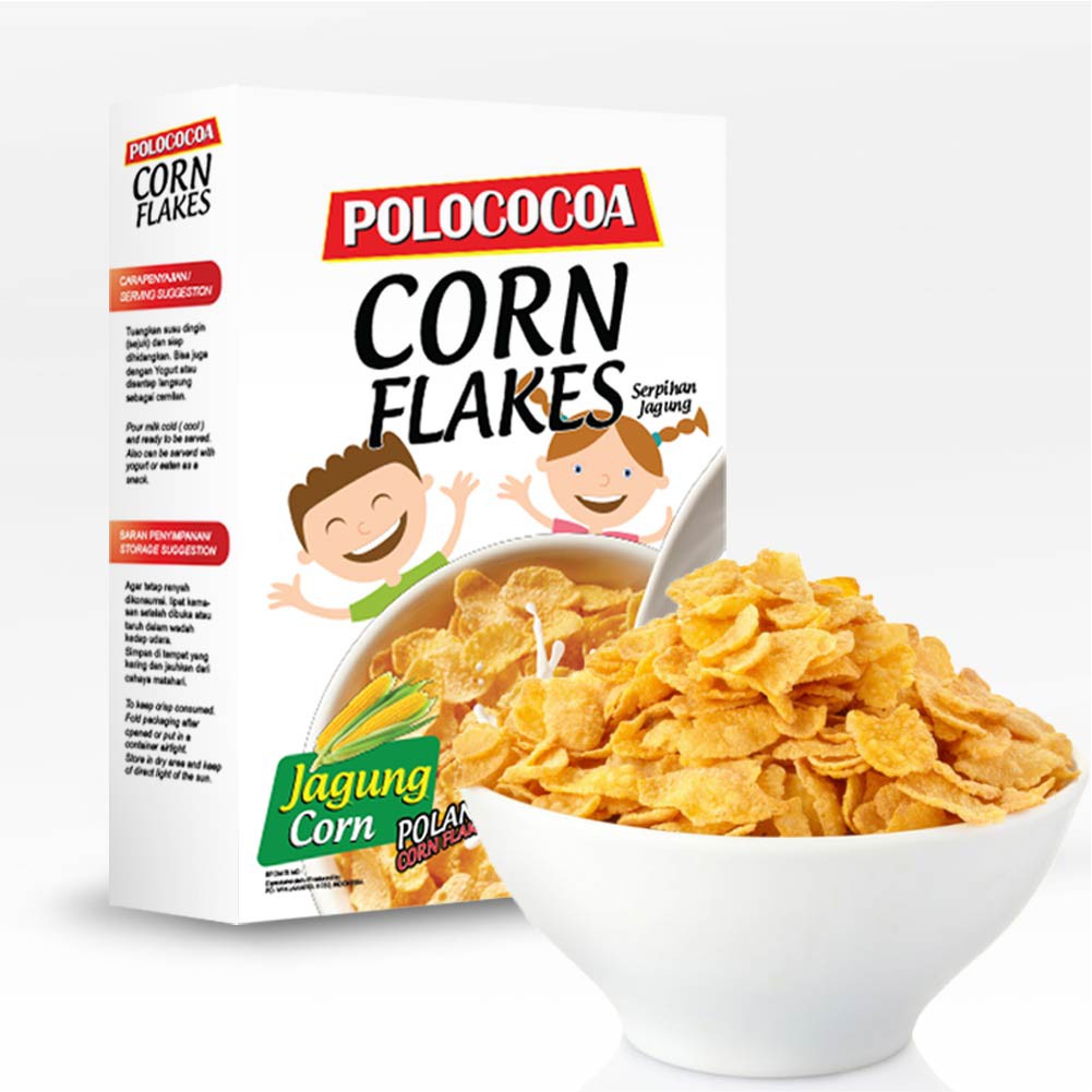 Polococoa Corn Flakes Sereal tentu tak bisa dilewatkan untuk jadi pilihan sereal jagung. Produk ini bisa jadi sarapan di pagi hari dengan campuran susu dan madu. Namun kamu bisa juga mengolahnya menjadi cookies atau memakannya langsung sebagai camilan. Sereal jagung ini diimpor langsung dari Polandia. Dengan kualitas terbaik dari jagung asli, produk ini dibuat tanpa menggunakan Modifikasi Genentik. Diolah dengan higienis, produk ini kaya akan vitamin A, D, E, B dan C. Komposisi dari produk ini adalah Jagung 87%,Extrak Barley Malt,Garam dan Gula. Sereal jagung ini sudah terdaftar di BPOM sehingga terjamin aman.