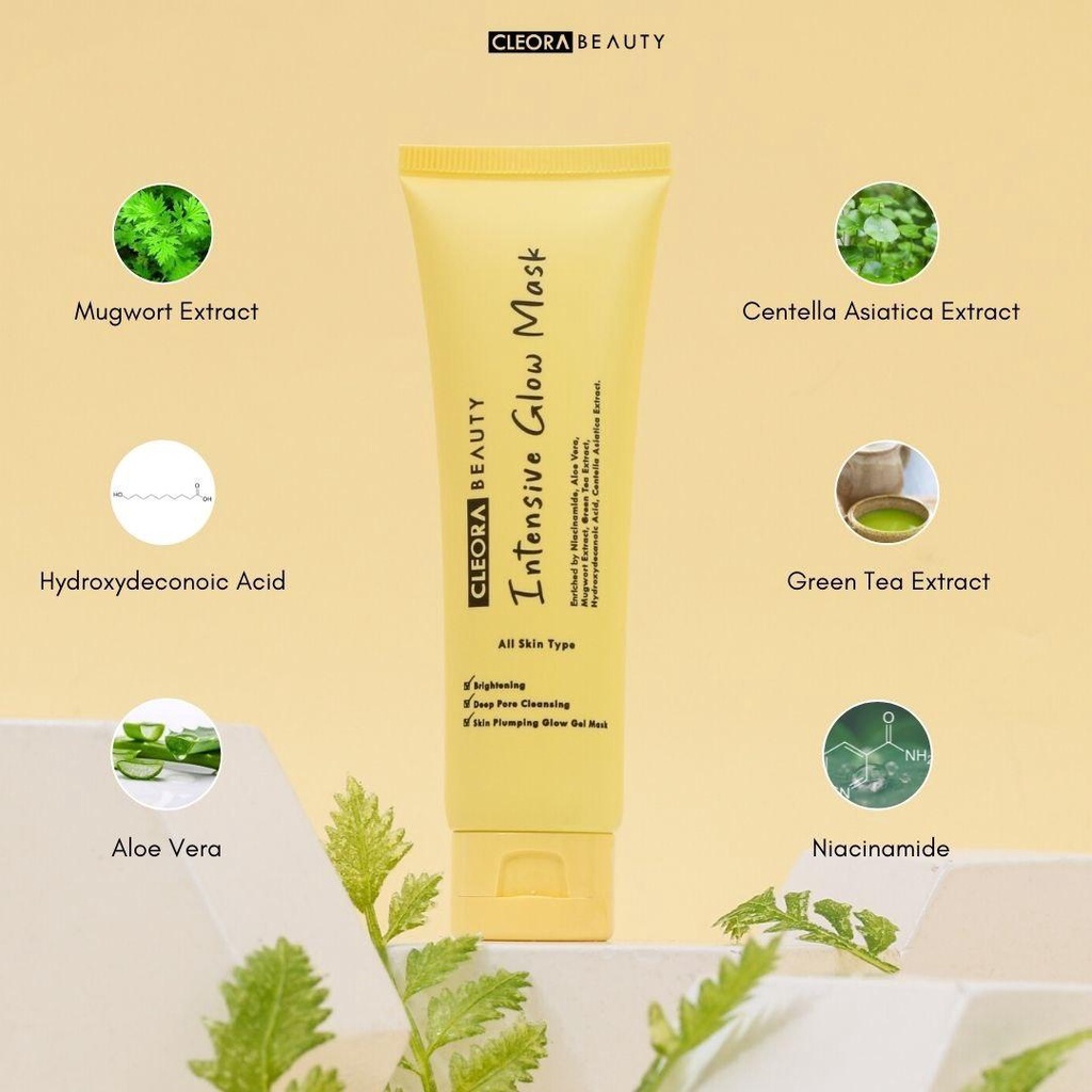 Intensive Glow Mask adalah Wash-Off Mask yang efektif menjaga kulit dari bakteri penyebab jerawat, mengurangi peradangan, dan membuat kulit tampak cerah bercahaya. Diformulasikan dalam bentuk gel yang lembut dan cepat mengering, produk ini mengandung bahan-bahan bermanfaat seperti Mugwort Extract & Hydroxydecanoic Acid, Green Tea Extract, Centella Asiatica Extract, Niacinamide, dan Aloe Vera. Manfaatnya meliputi menjaga kelembutan kulit, memberikan kilau cerah, mengontrol sebum berlebih, serta mengatasi permasalahan kulit sensitif, berjerawat, dan berminyak. Cocok untuk segala jenis kulit, termasuk kulit normal, kombinasi, kering, berminyak, dan sensitif.