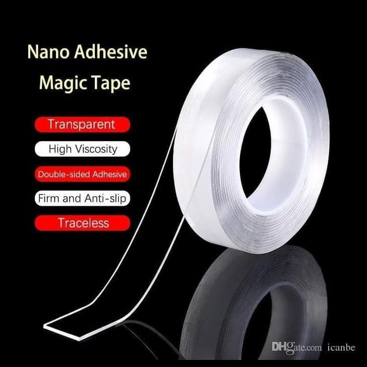 Nano Magic 1 m Double Tape Bening Tahan Air 30 mm x 1 m juga tidak bisa Anda lewatkan sebagai pilihan. Lakban terbaik dengan tipe double tape ini bisa dicuci dan bisa digunakan kembali.