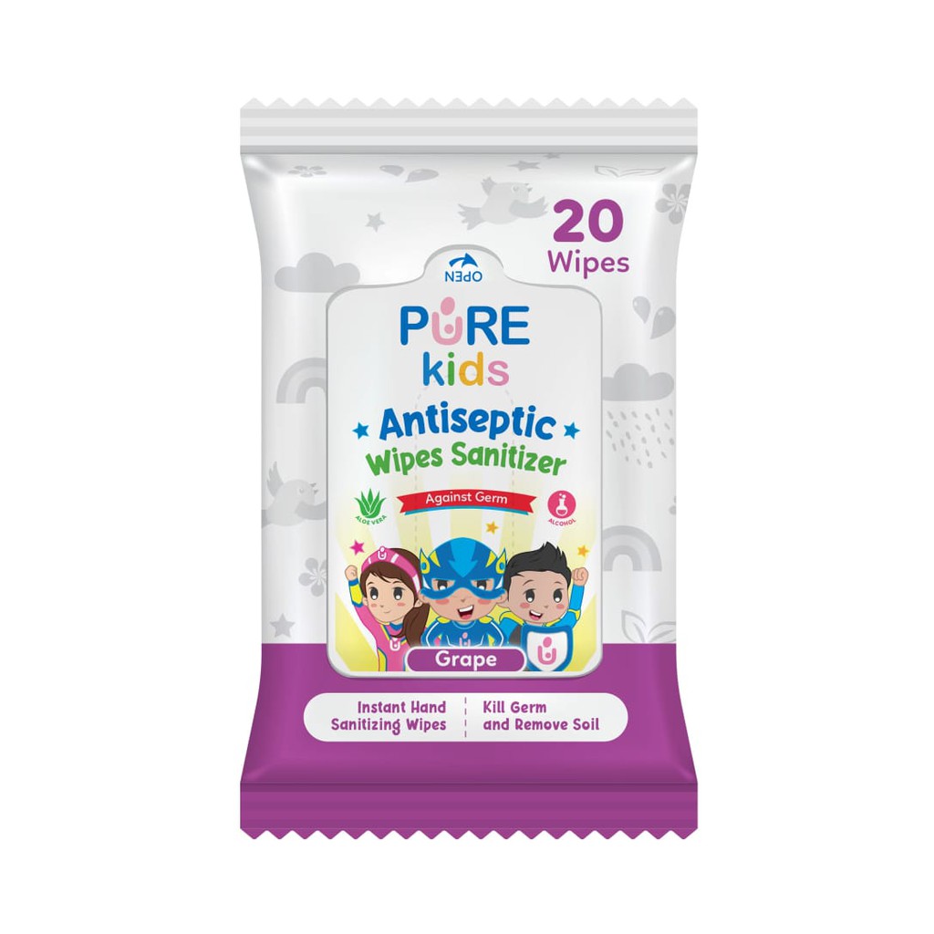 Peralatan makan dan minum serta mainannya bisa Anda lap dulu menggunakan Pure Kids Antiseptic Wipes Sanitizer ini. Satu kemasan memiliki 20 sheet. Terdapat dua varian, yaitu lemon dan grape yang cocok untuk anak-anak dan bayi.