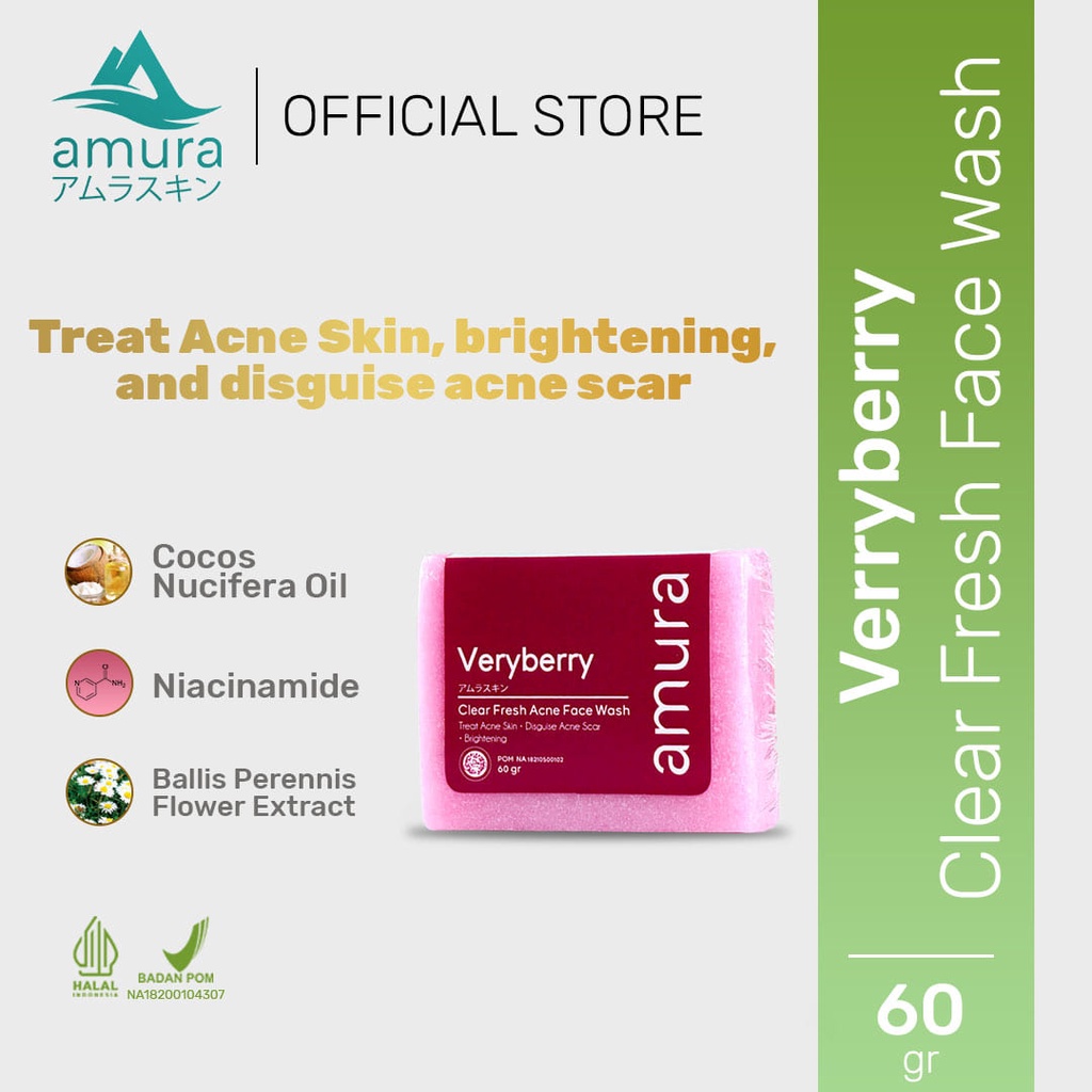 Amura Clear Fresh Acne Face Wash adalah solusi rahasia untuk kulit bebas jerawat di wajah maupun di punggung, serta beruntusan. Dengan formula aman yang sudah terdaftar BPOM dan terbuat dari ekstrak veryberry alami, produk ini cocok digunakan oleh perempuan dan laki-laki serta semua jenis kulit. Clear Fresh Acne Face Wash memberikan keunggulan seperti menjaga kebersihan kulit sekaligus melindunginya dari jerawat, menyamarkan bekas jerawat dan flek, serta memberikan perawatan yang menyeluruh bagi kesehatan kulit. Produk ini tidak lengket dan tidak menyebabkan komedo, mencegah dan mengurangi jerawat, serta melembabkan kulit wajah yang kering akibat jerawat. Dengan tidak mengandung bahan kimia berbahaya seperti SLS, Hydroquinon, Paraben, dan Mercury, serta memiliki sertifikasi BPOM dan Halal, Clear Fresh Acne Face Wash menjadi pilihan yang aman dan cocok untuk berbagai jenis kulit. Gunakan rangkaian produk skin care Amura secara rutin untuk mendapatkan hasil optimal, termasuk Stay Young Refresh / Clear Fresh Acne Face Wash saat mandi, Stay Young Cleansing Toner setelah mandi atau cuci wajah, serta rangkaian Amura Expert Serum dan Day / Night Cream untuk wajah yang semakin cerah dan glowing.