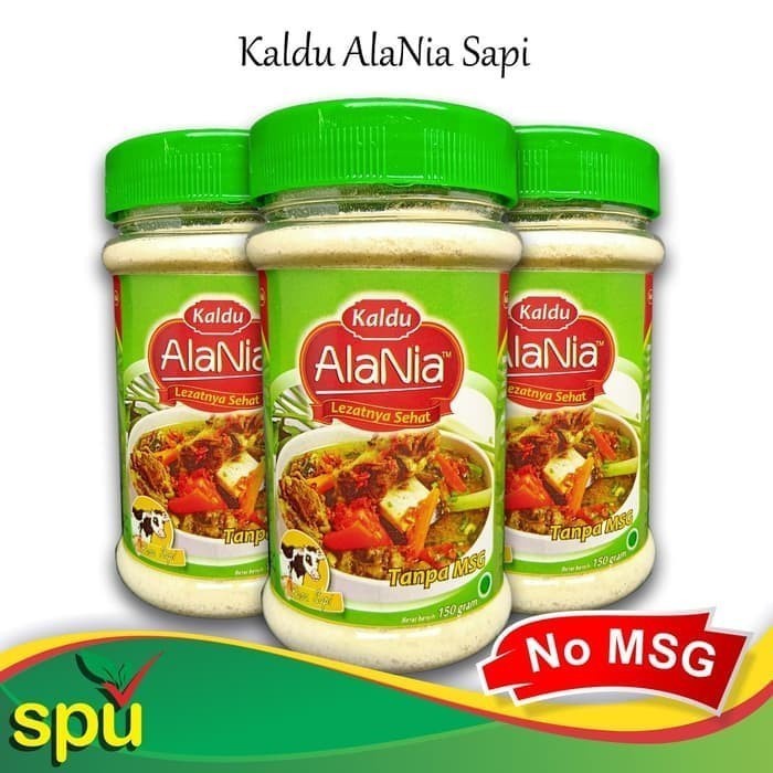 Kaldu AlaNia merupakan kaldu sehat alami non MSG yang terbuat dari ekstrak lemak sapi dan rempah-rempah segar. Dengan teknologi low temperature drying system, kaldu ini tidak menggunakan bahan pengawet dan aman bagi tubuh. Kaldu AlaNia dapat digunakan untuk berbagai masakan, termasuk sebagai kaldu MPASI untuk bayi di atas 6 bulan. Kemasannya yang dilengkapi dengan tutup ganda, segel alufoil, dan segel plastik shrink menjaga keamanan dan kebersihan produk. Selain itu, AlaNia Kaldu Sapi juga memiliki tambahan bahan-bahan seperti bawang putih, bawang merah, kunyit, merica, gula, dan garam untuk memperkuat rasa.