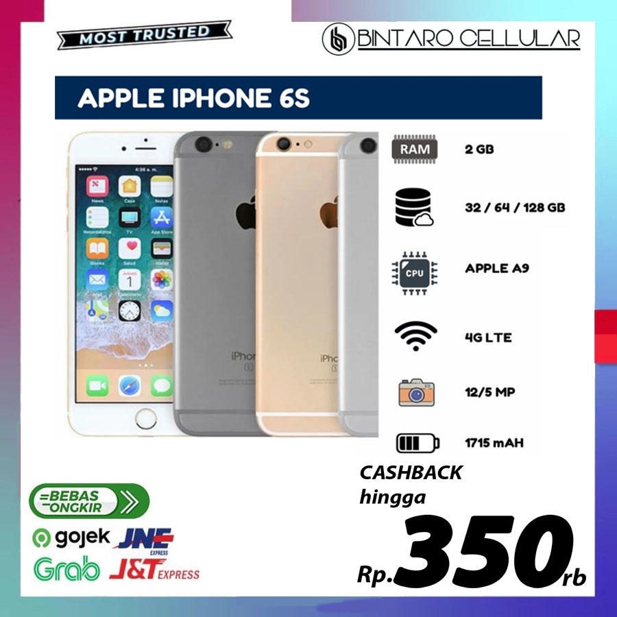 Apple iPhone 6s adalah pilihan yang tepat bagi Anda yang menginginkan smartphone dengan ukuran yang nyaman. Dengan layar 4,7 inci dan tingkat densitas piksel yang tinggi, Anda dapat menikmati tampilan yang jernih dan tajam. Kamera belakang 12MP dan kamera depan 5MP juga memberikan hasil foto yang memuaskan.