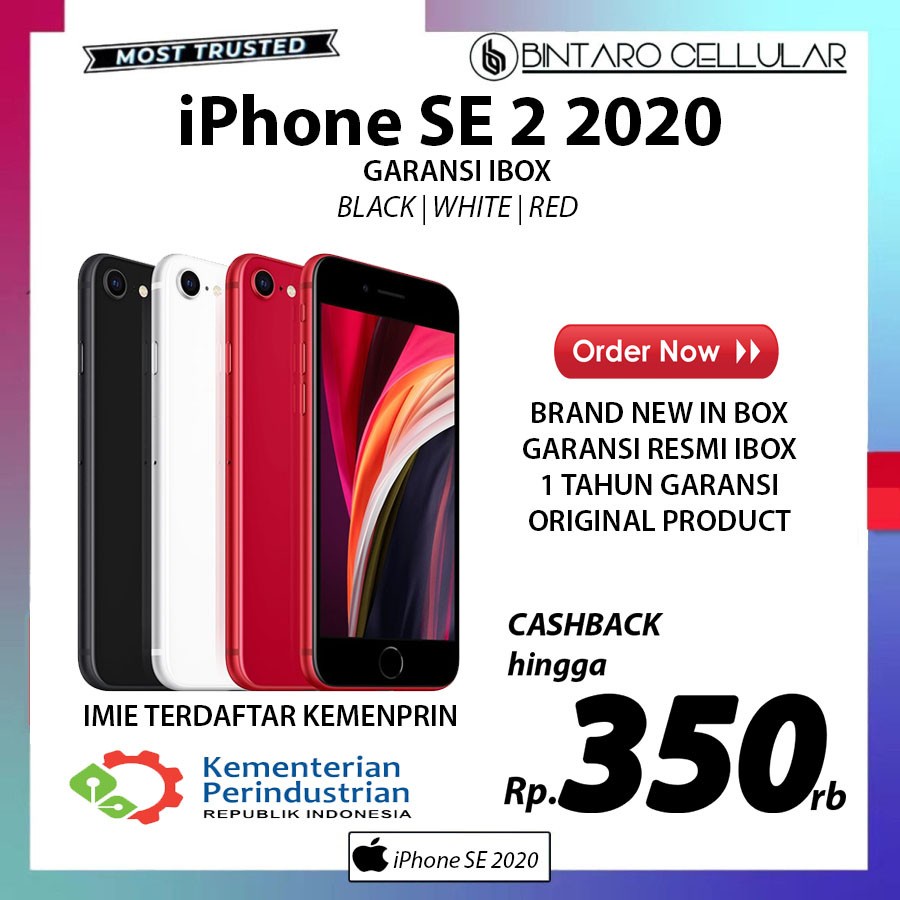 iPhone SE 2 2020 menawarkan pengalaman kompak dengan desain yang mudah digenggam. Menggunakan layar retina IPS LCD 4,7 inci, smartphone ini didukung oleh chipset A13 Bionic yang memberikan performa yang tangguh. Tersedia dalam pilihan RAM 3GB dan ROM 64GB/128GB/256GB, iPhone SE 2 2020 memberikan kapasitas penyimpanan yang cukup untuk kebutuhan Anda.