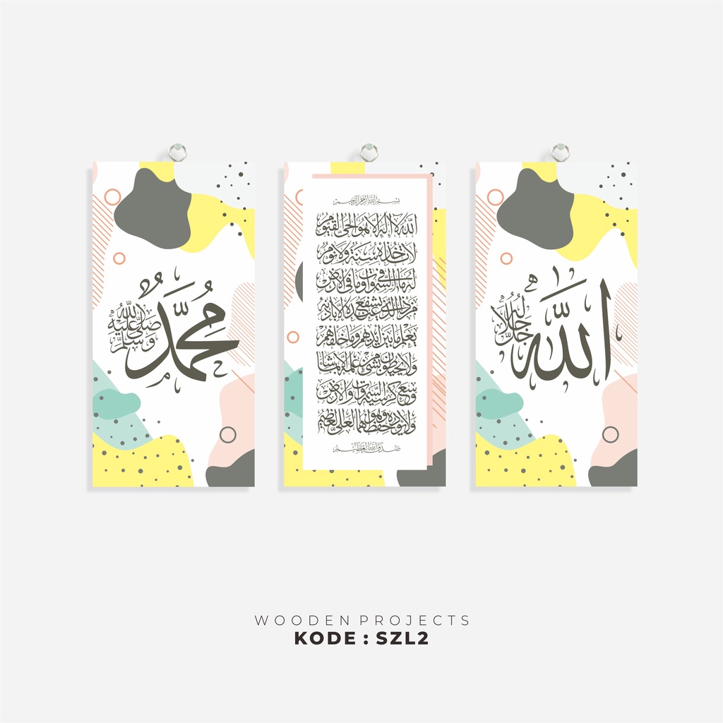 Wooden Projects menawarkan koleksi hiasan kaligrafi Arab yang menakjubkan, terutama seri SZL yang menjadi favorit banyak pelanggan. Seri SZL terdiri dari tiga buah hiasan dinding yang menawan dan dipajang secara berderet, memberikan sentuhan artistik pada ruangan berinterior modern ataupun vintage. Desainnya yang kekinian dengan kombinasi warna-warni pastel memberikan kesan fun yang menyegarkan. Kelebihannya meliputi tiga pilihan hiasan dengan desain dan warna terkini, menggunakan kayu MDF berlaminasi tahan air, dan satu set sudah termasuk tiga hiasan kaligrafi. Produk ini menggunakan bahan berkualitas, yakni papan MDF putih, serta dicetak dengan stiker vinyl resolusi tinggi dan dilaminasi agar tahan air. Ukurannya kompak dan ideal untuk ditempatkan di ruang mana pun, yaitu 15x30 cm untuk masing-masing papan, dan dapat dipasang dengan mudah berkat gantungan besi earpiece. Dengan keindahan seni kaligrafi dan daya tarik desainnya, hiasan kaligrafi SZL dari Wooden Projects menjadi pilihan tepat untuk menambahkan sentuhan estetika dan spiritual pada dekorasi interior Anda.