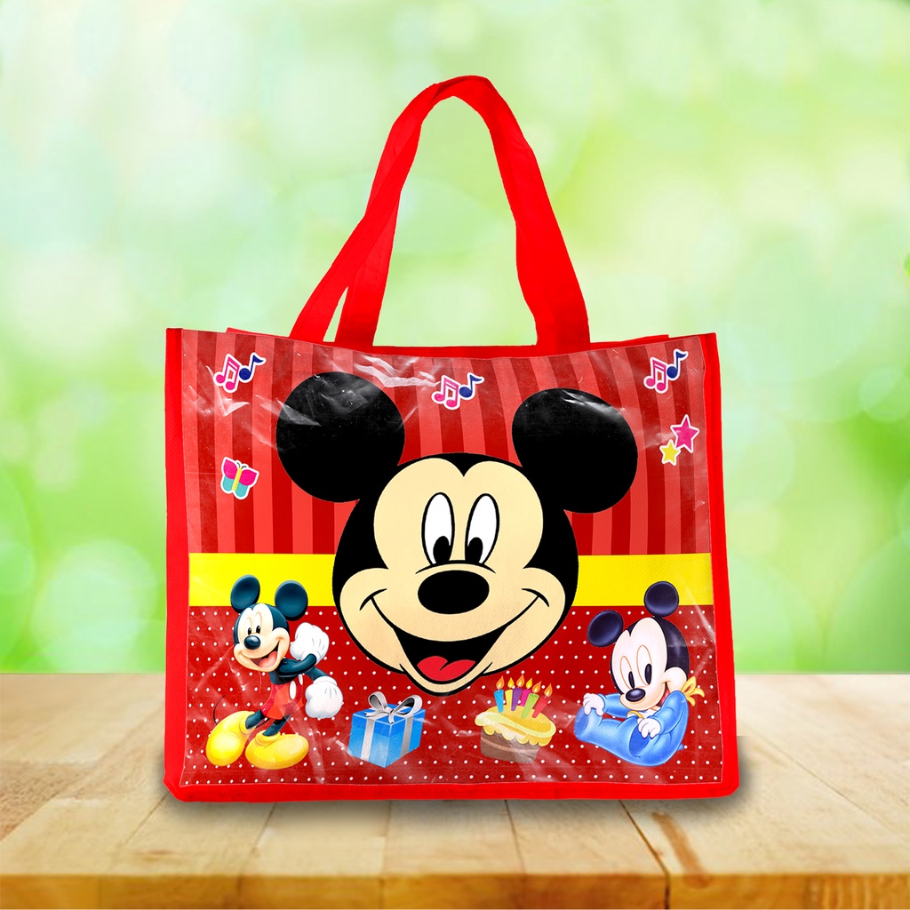 Sama halnya dengan batman, mickey mouse salah satu icon karakter kartun yang disukai anak-anak. Tokoh kartun dengan bentuk tikus ini hanya sebuah animasi yang kemudian berkembang hingga seluruh dunia. Goodie bag bisa memilih Tas Souvenir Ultah Goodie Bag Mickey Mouse ini. Bahannya terbuat dari spunbond 75 gsm. Goodie bag ini juga bisa dipakai berulang-ulang sehingga ramah lingkungan.