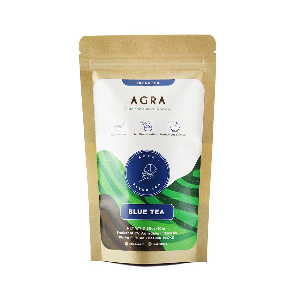 Teh bunga telang lainnya yang bisa kamu konsumsi di rumah tanpa membuat kantong bolong adalah Agradaya Blue Tea Dried. Terbuat dari seratus persen bunga telang yang dikeringkan. Bahkan tanaman tersebut ditanaman secara natural di kebun sendiri di Yogyakarta.
