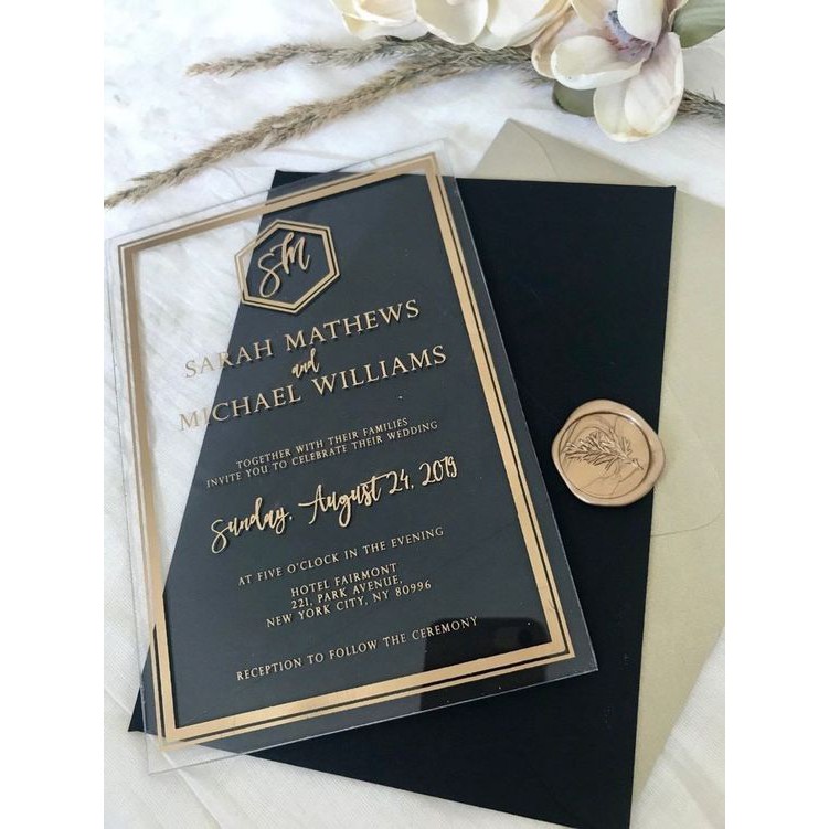 UNDANGAN AKRILIK merupakan undangan dengan desain unik yang bisa kamu pertimbangkan untuk jadi pilihan. Undangan ini berupa akrilik bening dengan ukuran 13 x 19 cm. Untuk pengerjaannya berkisar antara 2 hingga 10 hari. Minimal jumlah pemesananya adalah 45 pcs. Undangan bentuk akrilik bening ini berbeda dari lainnya karena terkesan lebih mewah dan elegan.