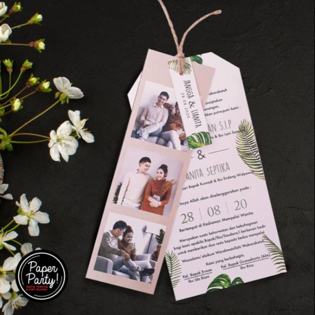 Uniknya lagi, kamu bisa tambah foto juga pada desain undangan ini. Untuk memesan, kamu butuh setidaknya memesan 200 buah. Pemrosesan undangan membutuhkan waktu 10 hari.