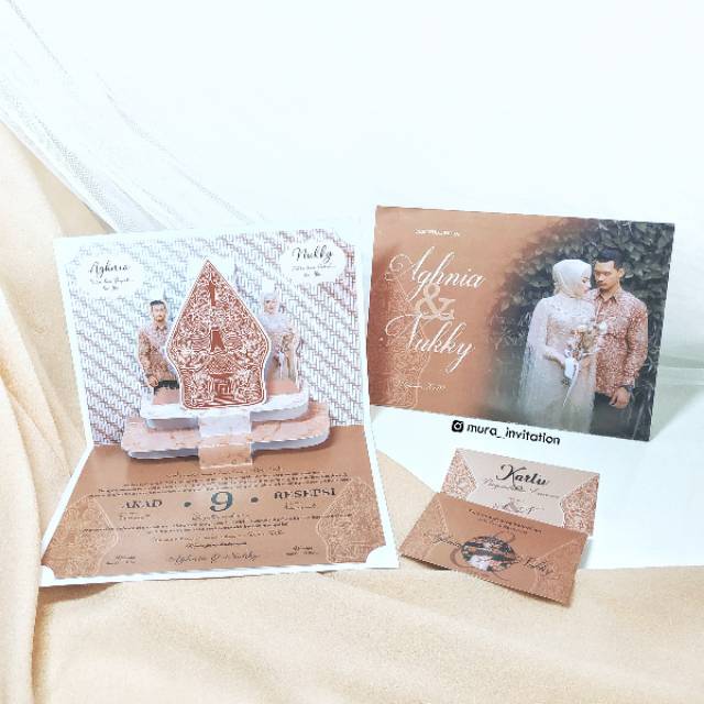 Undangan Pernikahan Popup Premium tak kalah menarik untuk jadi pilihan. Undangan ini modelnya 3 dimensi yang menonjol sehingga bisa mempercantik tampilan undangannya saat dibuka. Penerimanya pasti surprise dan senang menerima undangan keren ini.