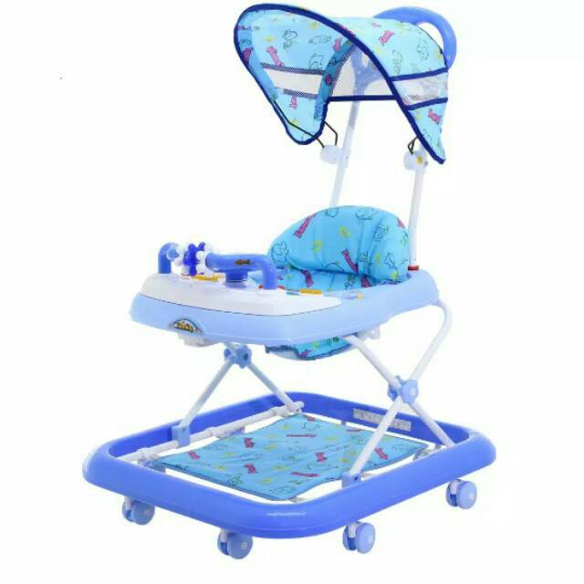 Baby walker ini dilengkapi dengan kanopi sehingga bayi Anda terlindung dari terik matahari yang terlalu panas, saat Anda mengajaknya menikmati suasana di luar rumah. Bisa sekaligus menjadi stroller untuk jalan yang dekat-dekat saja. Di bagian bawahnya terdapat alas, dan di bagian depan terdapat beberapa mainan untuk si kecil.