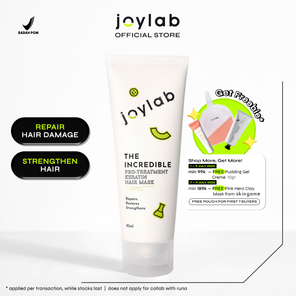 Joylab The Incredible Pro-Keratin Hair Mask adalah masker rambut yang memberikan treatment ekstra untuk merawat rambut rusak dan kusut akibat proses hair styling. Diformulasikan dengan Hydrolyzed Keratin, Hydrolyzed Soy Protein, dan ekstrak Ginseng, masker ini membantu mengurangi rambut yang patah, membuat rambut tampak sehat, kuat, dan berkilau.