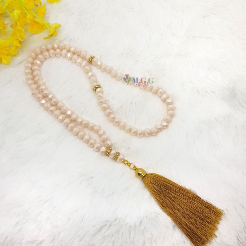 Tidak semua orang menyukai tasbih digital meskipun cara penggunaannya mudah. Nah, bila kamu menyukai tasbih biasa bisa memberikan Tasbih Batu Kristal warna cream ini. Tersedia 33 butir dengan setiap butirnya memiliki kualitas terbaik dan dirangkai menggunakan tali yang kuat.