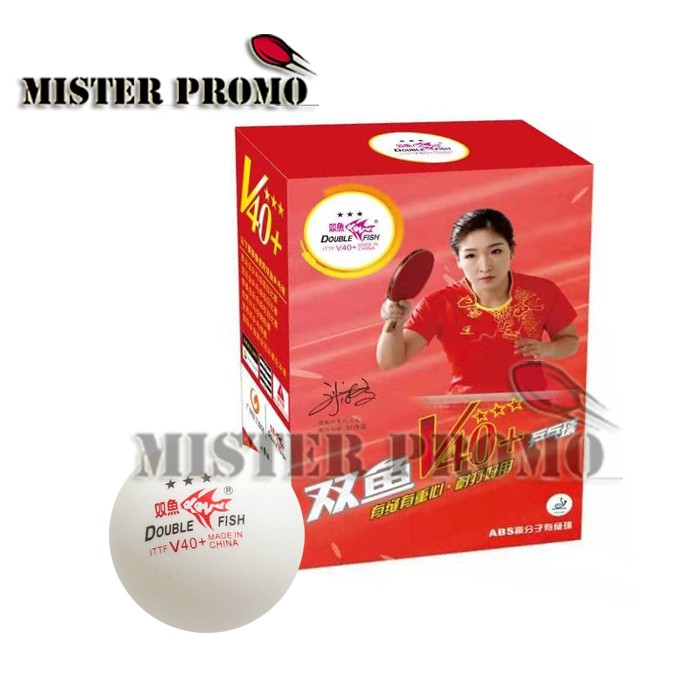 Bola Pingpong Tenis Meja Double Fish V40+ ini juga cocok jadi pilihan. Produk yang satu ini diproduksi oleh Cina. Bola yang satu ini bentuknya bulat sempurna dan memiliki daya tahan yang baik. Putaran bolanya juga konsisten sehingga cocok untuk bermain dalam turnamen. Bola ini juga pernah dipakai dalam Team World Cup yang diselenggarakan oleh ITTF tahun 2018 di London.