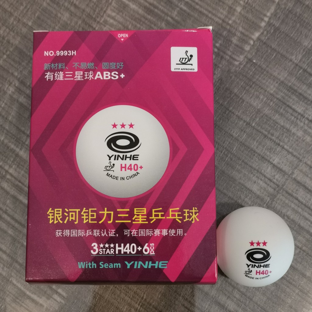 Yinhe H40+ 3 Star Ball merupakan rekomendasi selanjutnya yang bisa diandalkan. Kamu bisa memakai bola pingpong yang satu ini untuk aneka turnamen kecil atau untuk bermain bersenang-senang dengan keluarga. Produk yang satu ini terbuat dari bahan plastik ABS. Bola pingpong ini hadir dengan sambungan. Bola warna putih ini dikemas dalam kotak berisi 6 buah. Produk ini memiliki diameter 40 mm. Bola sudah disetujui oleh ITTF.