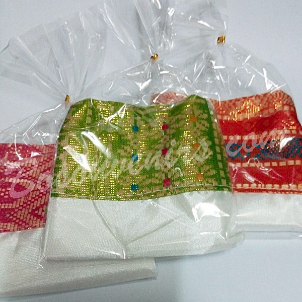 Kamu bisa lirik Dompet Saten Serut + kemasan Plastik sebagai pilihan suvenir. Dompet keren ini terbuat dari bahan kain satin dan songket. Ukuran dompetnya adalah 15 x 9 cm. Dompet ini telah dibungkus plastik dan sudah diberi ikat warna emas jadi siap dibagikan.