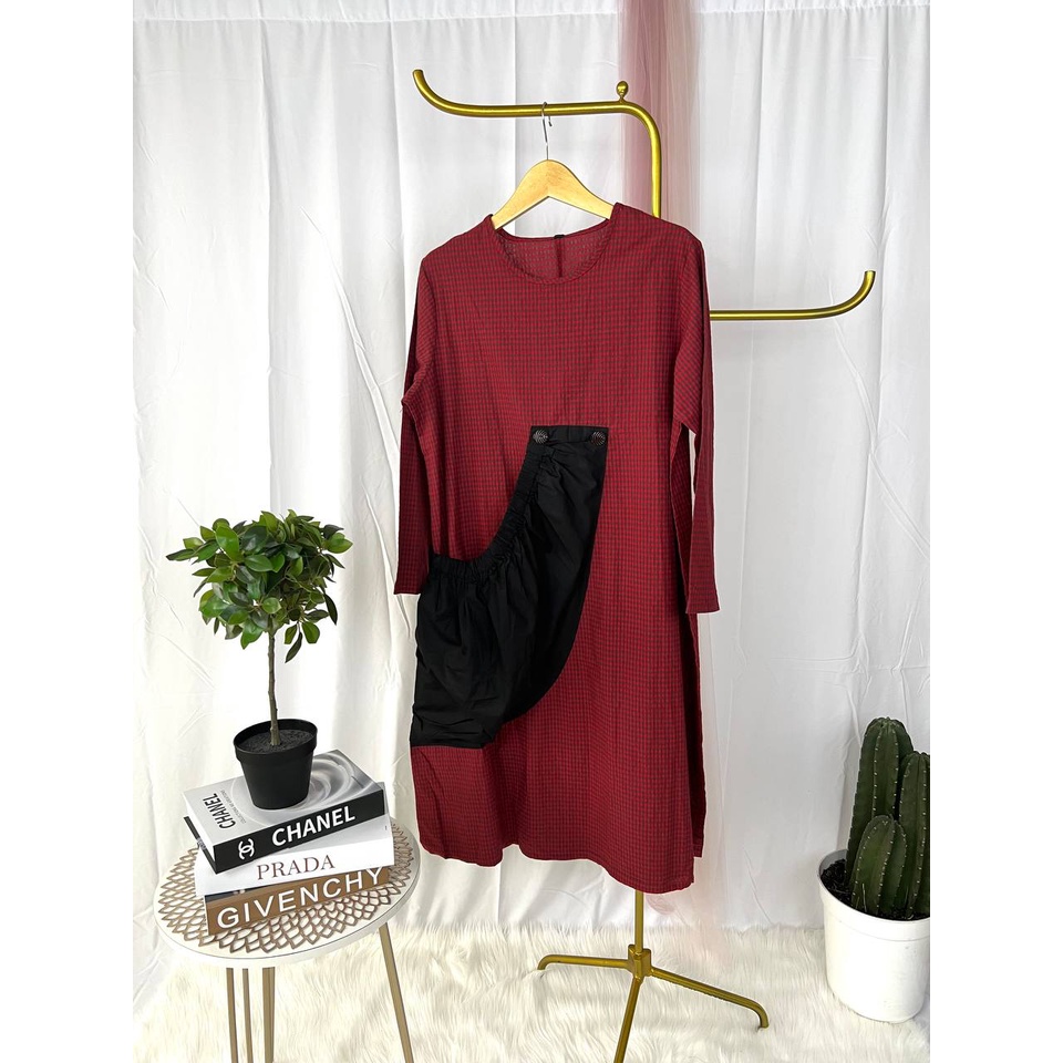 Seperti namanya, produk satu ini sudah pasti terbuat dari material yang sama, yaitu katun kombinasi. Lingkar dada yang cukup besar yaitu 116 cm tidak heran memang tunik ini pas menjadi pilihan tunik oversized yang cocok untuk para wanita dengan berbagai berat badan. Sementara untuk panjang baju adalah 111 cm.
