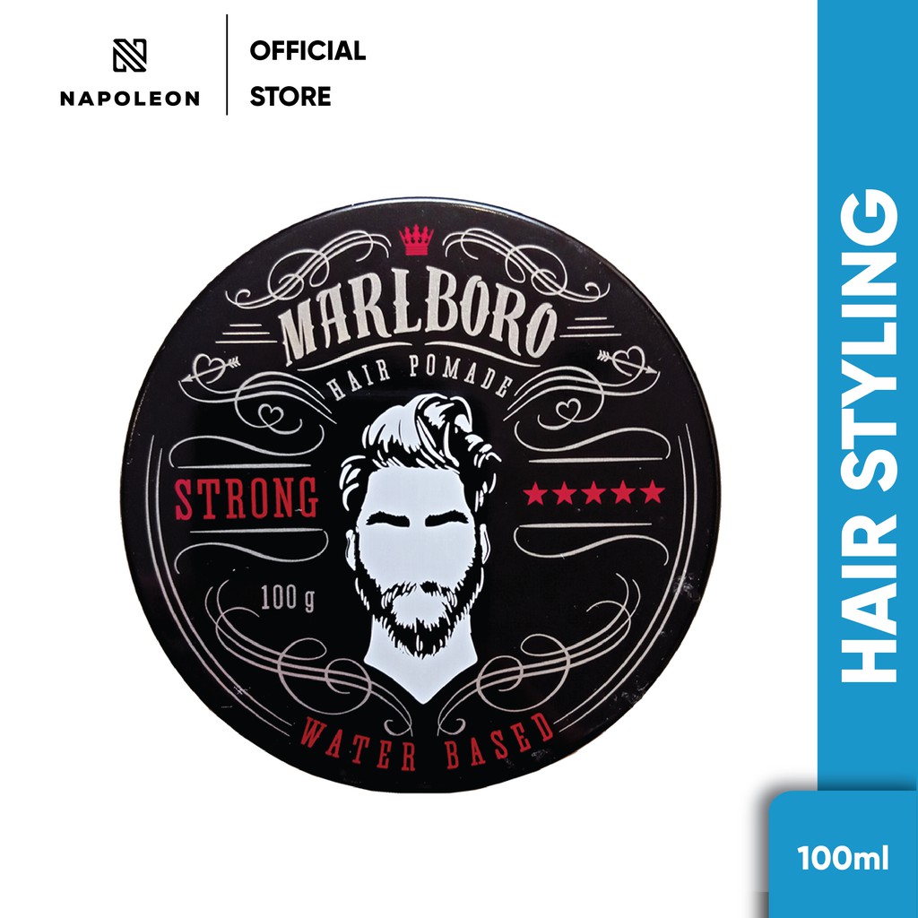 Napoleon Pomade Waterbased Marlboro - Strong adalah pilihan terbaik untuk merapikan dan memberikan kilau pada rambut sulit diatur. Dengan aroma segar lemon, jasmine, dan lily, pomade ini memberikan pengalaman yang menyenangkan dalam menata rambut.