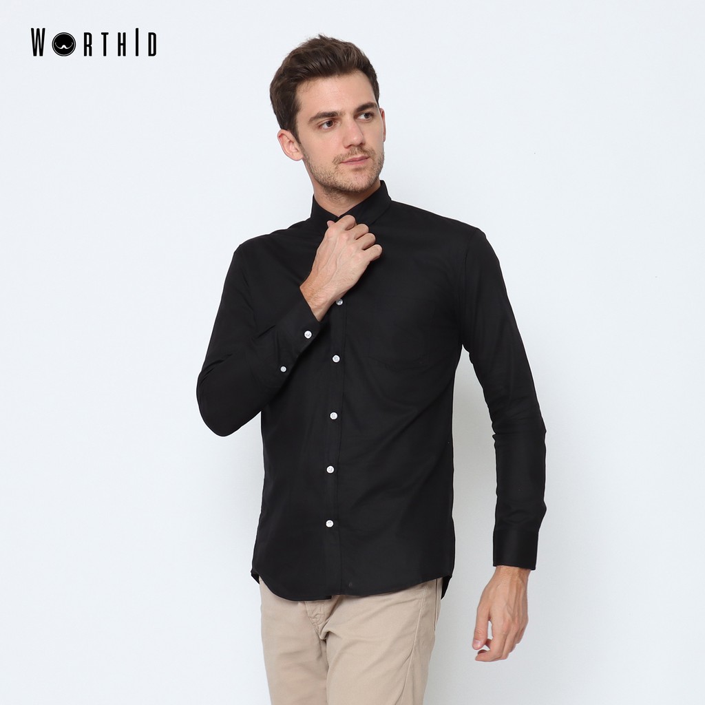 5. Worth ID Kemeja Pria Basic Polos Panjang Black, Kemeja Premium yang Bikin Suami Tambah Keren