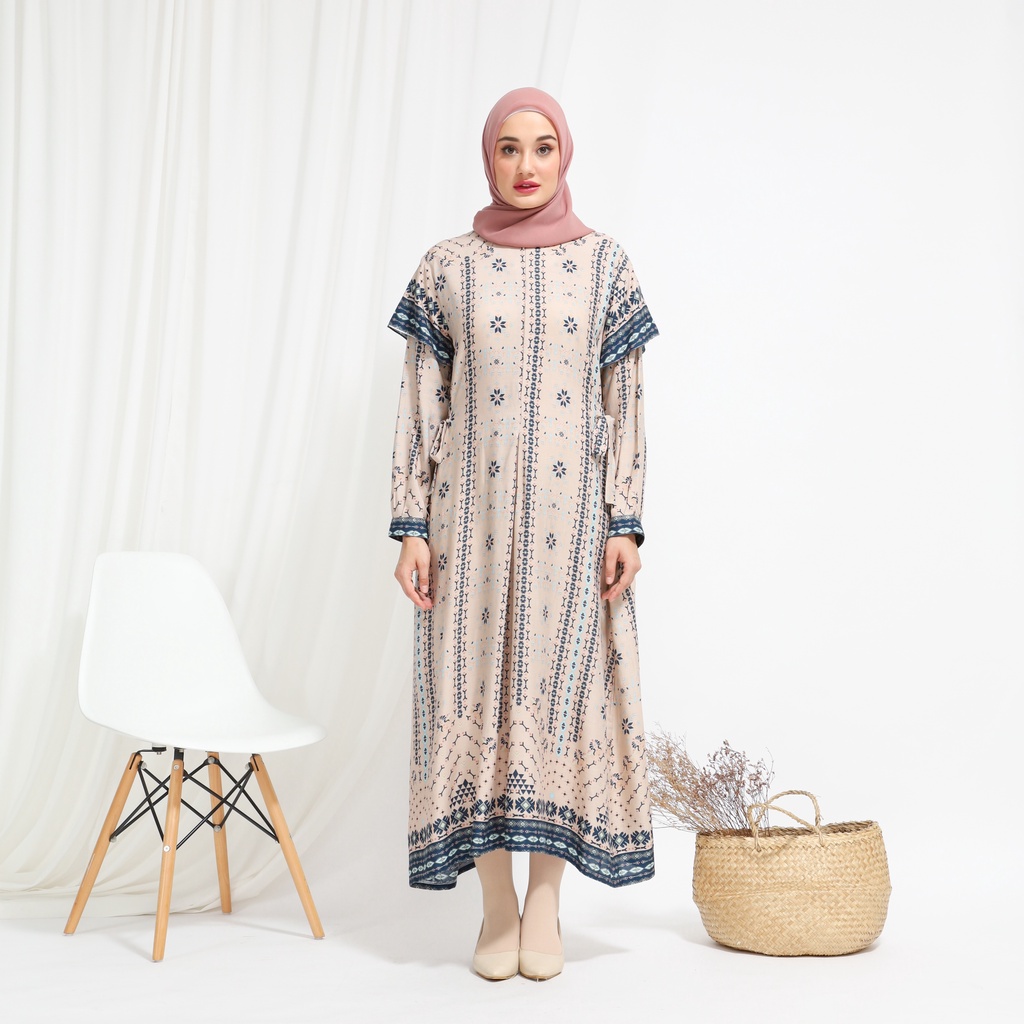 Untuk yang ingin lebih fashionable namun tetap tampil gaya ada Gamis Sabrina Homey Busui dari Lalucuku. Bahannya menggunakan bahan catton rayon premium yang bahannya tidak membuat gerah. Terdapat resleting di bagian depan busui friendly. Terdapat ikatan tali di bagian kanan dan kiri dan juga kantong di bagian kiri. Motifnya menggunakan motif printing dan terdapat kancing di bagian tangan untuk mempermudah saat berwudhu.