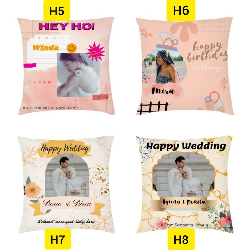 Hadiah pernikahan unik untuk guru ada bantal sofa custom. Kamu bisa memberikan mengumpulkan foto teman-teman yang nantinya akan dipakai di bantal sofa.